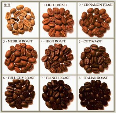 咖啡的香气和味道是在烘焙後才产生的。在烘焙过程中,咖啡生豆的水分慢慢减少,咖啡豆重量慢慢减轻,颜色会越来越深,体积不断膨胀,其中含有香气的油脂也会慢慢释放出来。此外,生豆中原本含有的大量绿原酸,随着烘焙的过程会逐渐消失,释放出好闻的水果酸,咖啡豆的味道随烘焙时间长短而有所差异。下图你可以看到咖啡豆在烘焙过程中外形的改变。